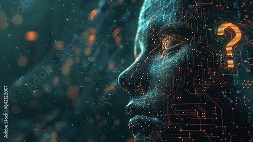 Representation of ethical AI dilemmas with holographic human face and circuits. AI ethics