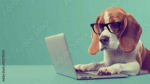 clever beagle dog using laptop funny business concept anthropomorphic animal digital illustration