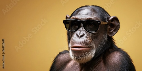 Chimpanzee with Sunglasses on a Solid Background, Featuring Ample Copy Space