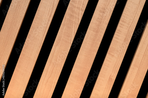 Drewniane jasne panele lamele na czarnej ścianie z bliska makro
