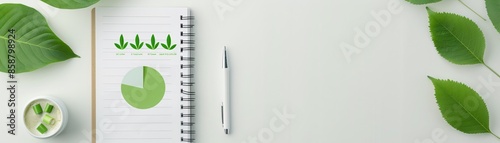 A detailed financial document featuring green charts sits elegantly on a desk, surrounded by fresh leaves. This visual metaphor highlights the importance of environmentally conscious investments and