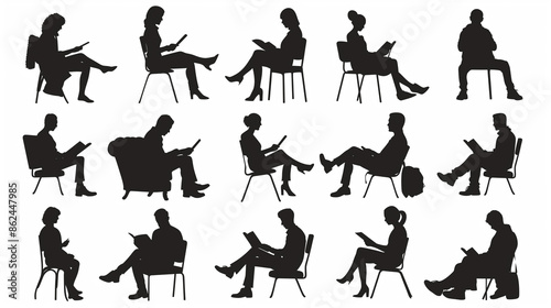 シルエットアイコン集 人物 読書 タブレット 座る くつろぐ