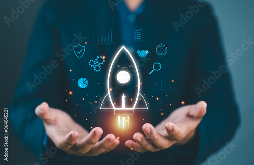 Business management propels investment on the fast track to wealth. Rocketing off with a targeted launch speed, the graph depicting rising earning and increasing profits exemplifies financial success.