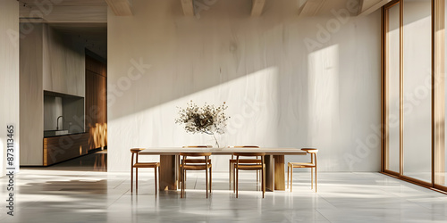 Imagen de un comedor de madera minimalista en una casa amplia y elegante
