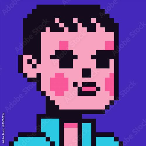 Pixel art female character 8-bit girl, NFT, 80-s, avatar, woman face, cartoon vector icon, game user, web profile persons, people, social net portrait, minimalistic style. Non-fungible token.