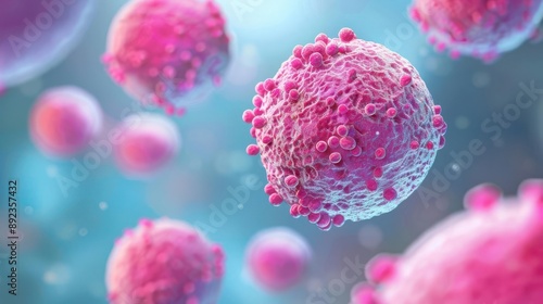 Artistic 3D illustration of mast cell degranulation in an allergic reaction, mast cell, allergic response