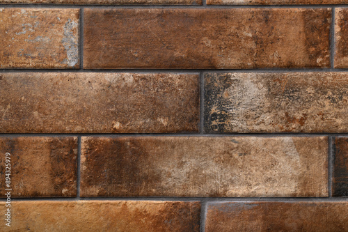Struktura, brązowa tapeta, sciana z brązowych cegieł z bliska