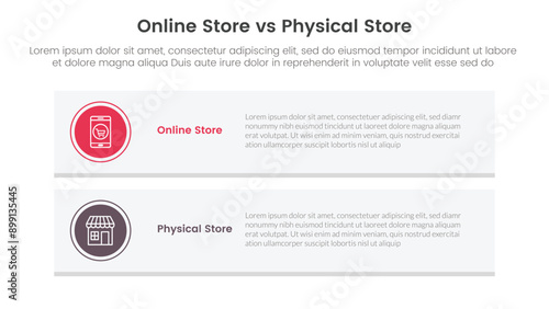 online store vs brick mortar or physical store comparison concept for infographic template banner with long rectangle box vertical with two point list information