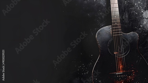 Close-Up view of Acoustic Guitar on Wooden Background with Copy Space