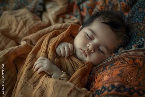 Noworodek, niemowlę, sen noworodka, śpiące dziecko, noworodek, dwa tygodnie, miękki kocyk, spokojny sen, urocza twarz, delikatne światło, przytulność, bezpieczeństwo, ciepło, tekstura, spokój,