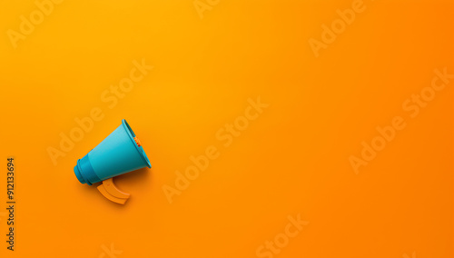 Megaphone on an orange background with space for text, refer a friend and affiliate promotion concept banner background with copyspace