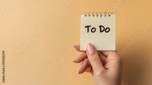 hand holding pin-note with "to do" text isolated on beige background