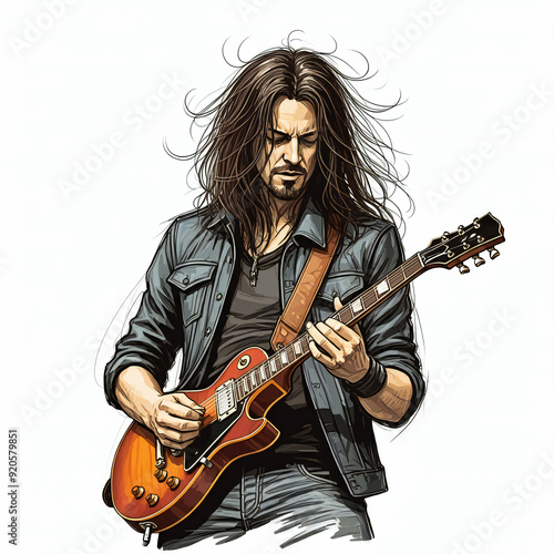 Electric Guitar Player Isolated On White Background, Ai Illustration