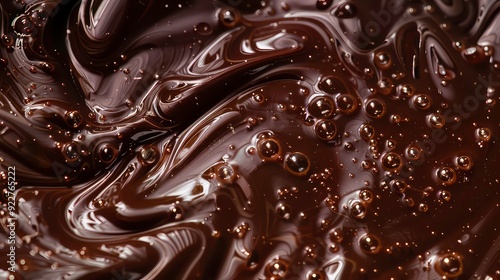 Close-up of dark liquid with swirling pattern and air bubbles.