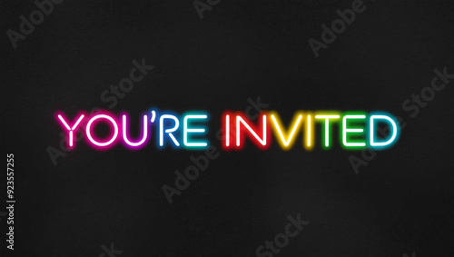 youre invited colorful neon lettering on plain dark black background
