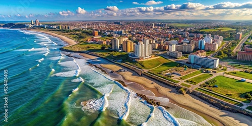 High resolution drone photos of the Argentinian coast near Mar del Plata Casino Central in spring