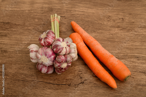Bukiet aromatycznych warzyw, marchewka czosnek, warzywa z domowego ogródka