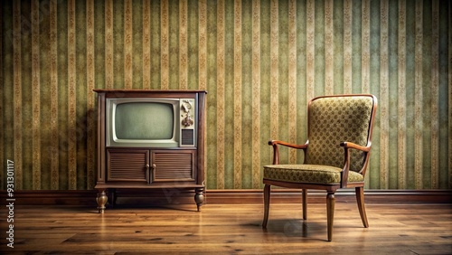 Vintage room with old wooden TV and chair , retro, interior, old, television, wooden, chair, room, vintage, nostalgia