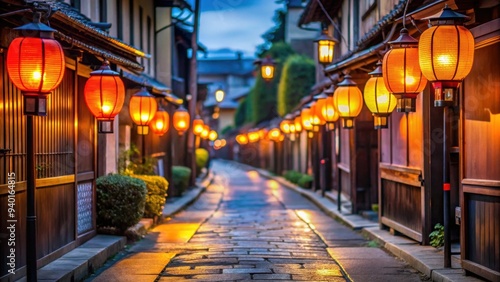 Japanese lanterns glowing on the streets of Kyoto , traditional, illuminated, lanterns, night, Kyoto, Japan, cultural