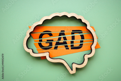 Outline of a brain with the acronym generalized anxiety disorder GAD.