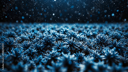 Zbliżenie na niebieskie śnieżynki z efektem bokeh - Zimowa magia w szczegółach