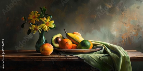 Tropical fruit arrangement featuring mango and avocado