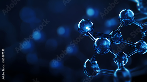 Molecular structure model on blue background