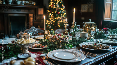 Stół przygotowany na rodzinny obiad wigilijny emanuje ciepłem i przytulnością. Czerwony obrus z białymi świątecznymi wzorami pokrywa powierzchnię stołu.