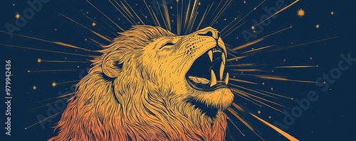 Leo depicted as a golden lion roaring amid a cosmic burst of light, representing courage and leadership