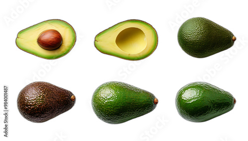 Avocado dall'alto- Sei set di avocado su uno sfondo bianco. Ogni set contiene un avocad_1(42)