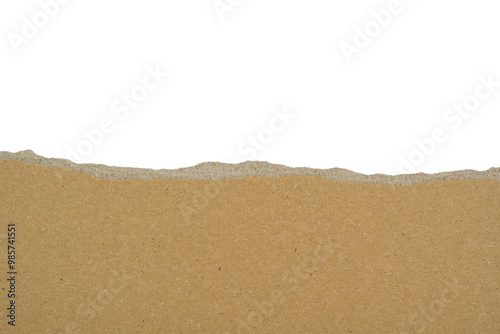 Cartón marrón rasgado sobre fondo blanco, detalle