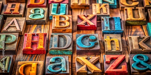 Close-Up of Typographic Metal Letters Arranged on Vintage Wood Background for Design Purposes