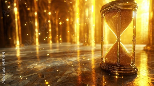 A shimmering hourglass glows in a mystical setting, symbolizing the passage of time and the beauty of fleeting moments.