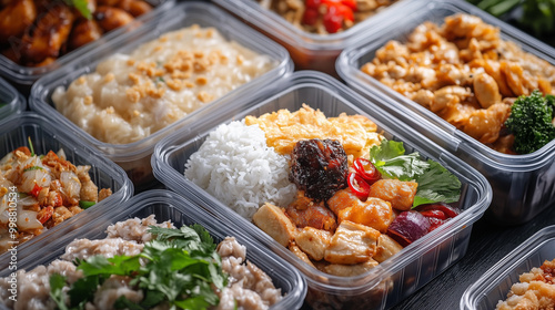Nowoczesne tajskie pudełka obiadowe w plastikowych opakowaniach kuszą intensywnymi kolorami i apetycznymi aromatami.