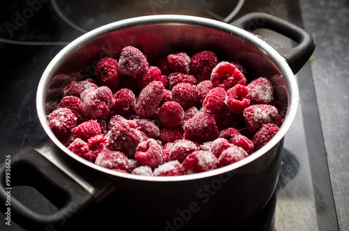 Mrożone maliny w garnku