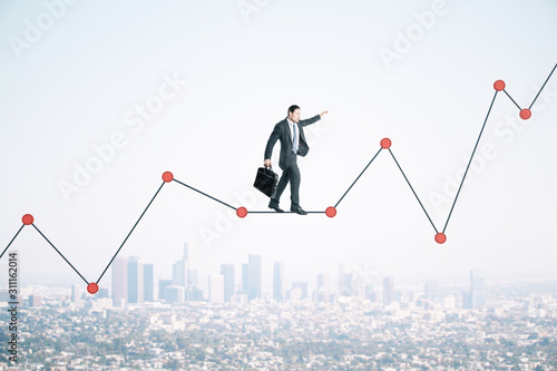 Businessman with briefcase walking on chart