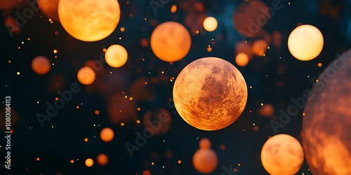 Floating luminous circles on dark space