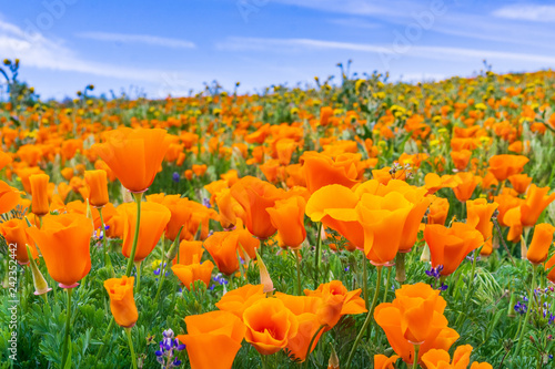 Close up of California Poppies (Eschscholzia californica) during peak blooming time, Antelope Valley California Poppy Reserve