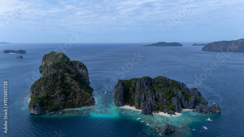 Drone aerial view of Shimizu Island in El Nido, Palawan, Philippines. Tour A route and Place.