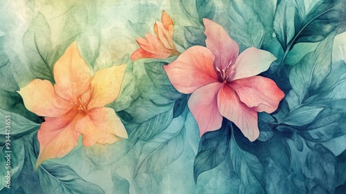 Watercolor illustration depicting the transformation of floral elements and foliage in an artistic design