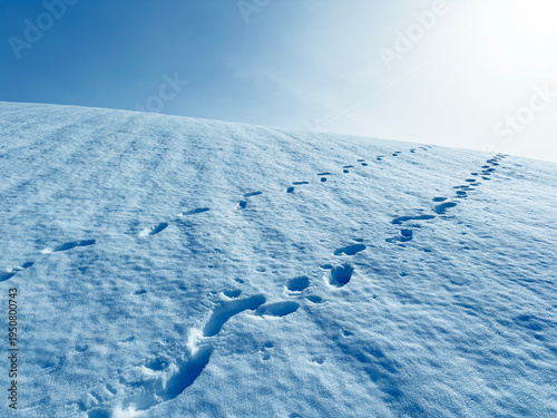 Wonderful winter hiking trails and traces on the fresh alpine snow cover of the Bernese Oberland region, Switzerland - Herrliche Winterwanderwege und Spuren auf der frischen Schneedecke, Schweiz
