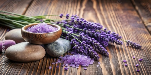 Soothing spa treatment with lavender-infused stones on a wooden table , wellness