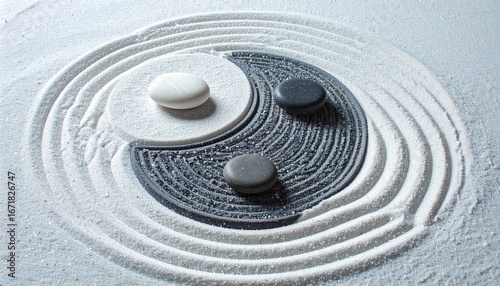 Find inner peace visualizing a balanced Zen garden with smooth stones and raked sand for mindfulness