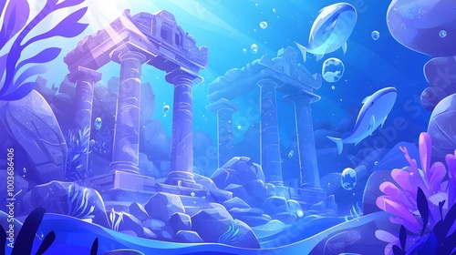 Underwater Ruins with Fish