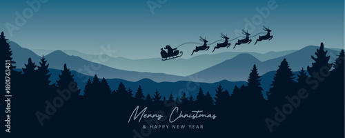 christmas banner santa claus in a sleigh with reindeer vector illustration