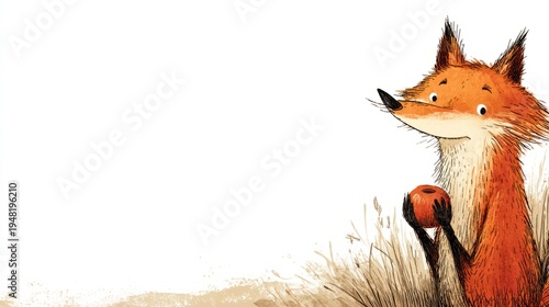 Charming Cartoon Fox Holding a Stolen Apple in a Sneaky Manner