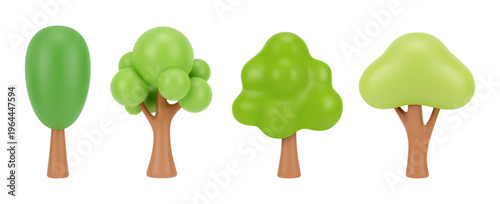 Landscape design or game environment scenery decor. Vector isolated 3d icon botanical vegetation and botany with foliage, stem and leaves. Flora and realistic seasonal spring park or woods