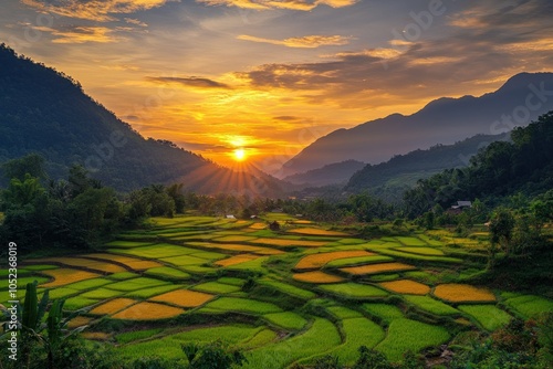 Vibrant Sunset Over Stunning Landscape Fields