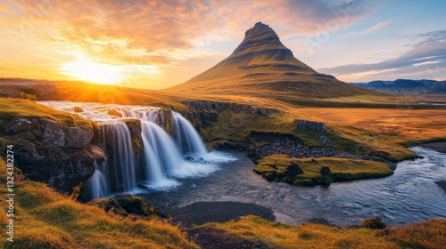Serene Sunrise Over Kirkjufellsfoss Waterfall Landscape