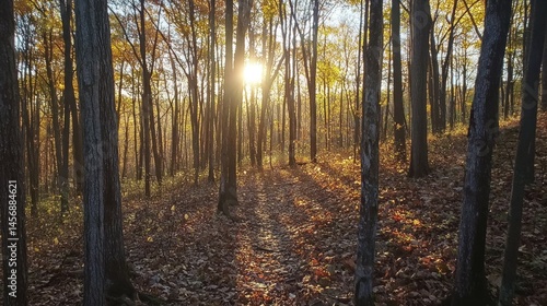 Golden Sunlight Filters Through Autumn Woods